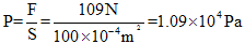。本题易错解为:水平力为100N,物体重9N,则墙壁受到的压力为109N,则物体对墙壁的压强为